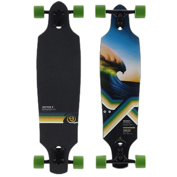 The Sector 9 Rollhouse Roll Drop Through Longboard features artwork by Thurston photography and measures 8.85" wide x 34" long and is super easy to travel with. Open the box and get ready to slay the streets. Trucks, wheels, bearings, hardware, and grip tape included.